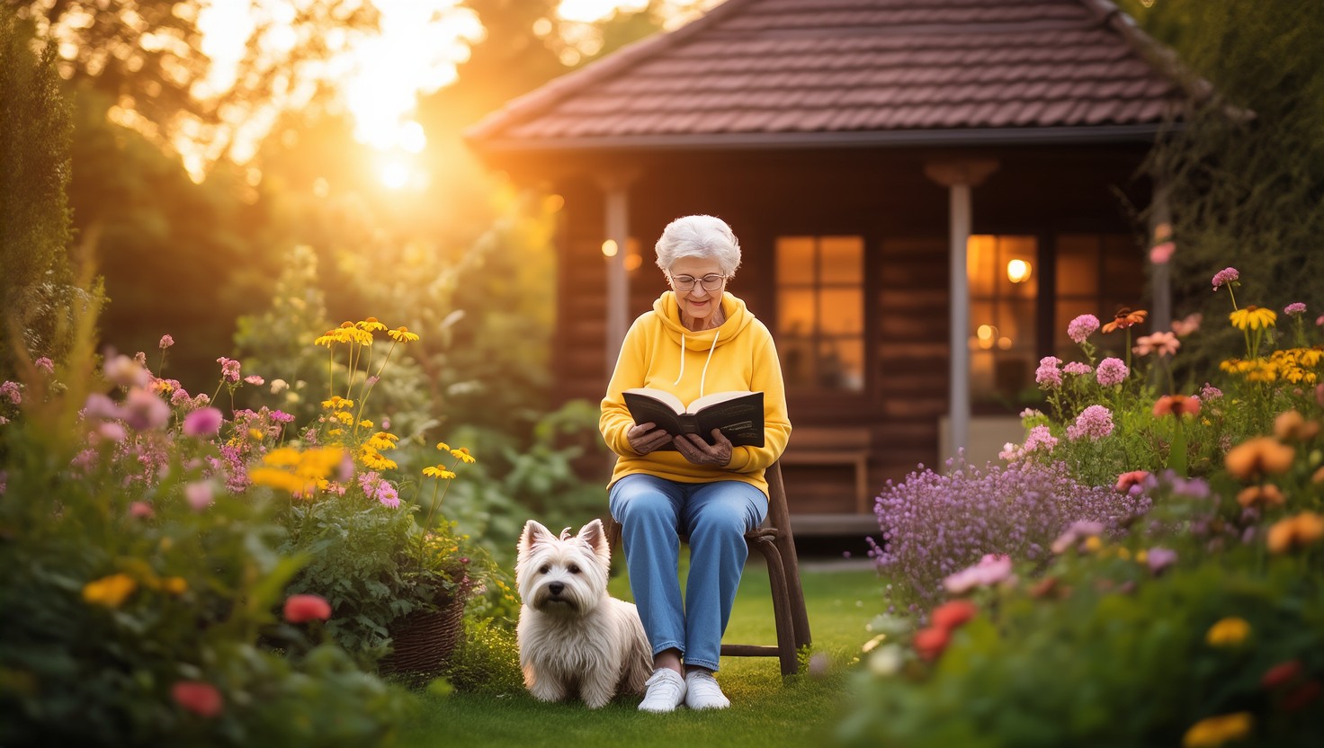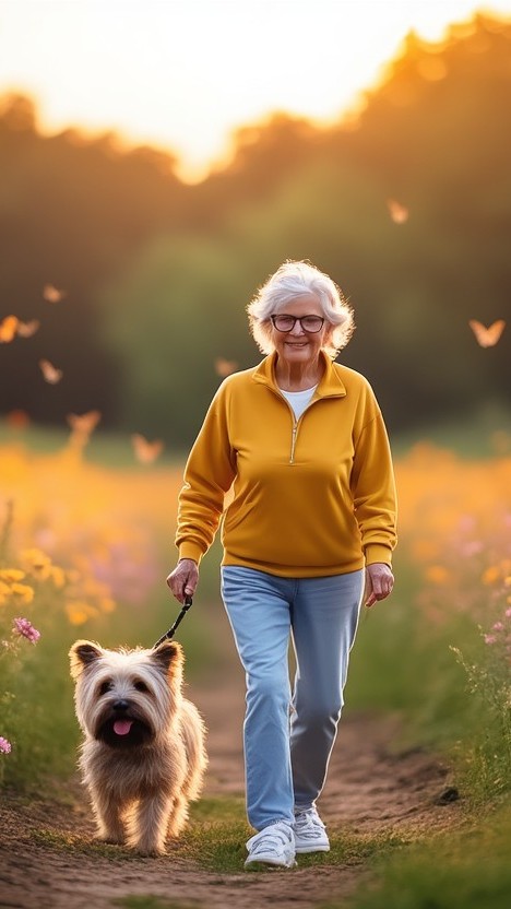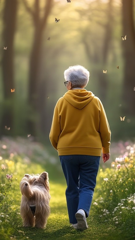 (Clémentine, la grand-mère et Cléo, le petit Cairn terrier