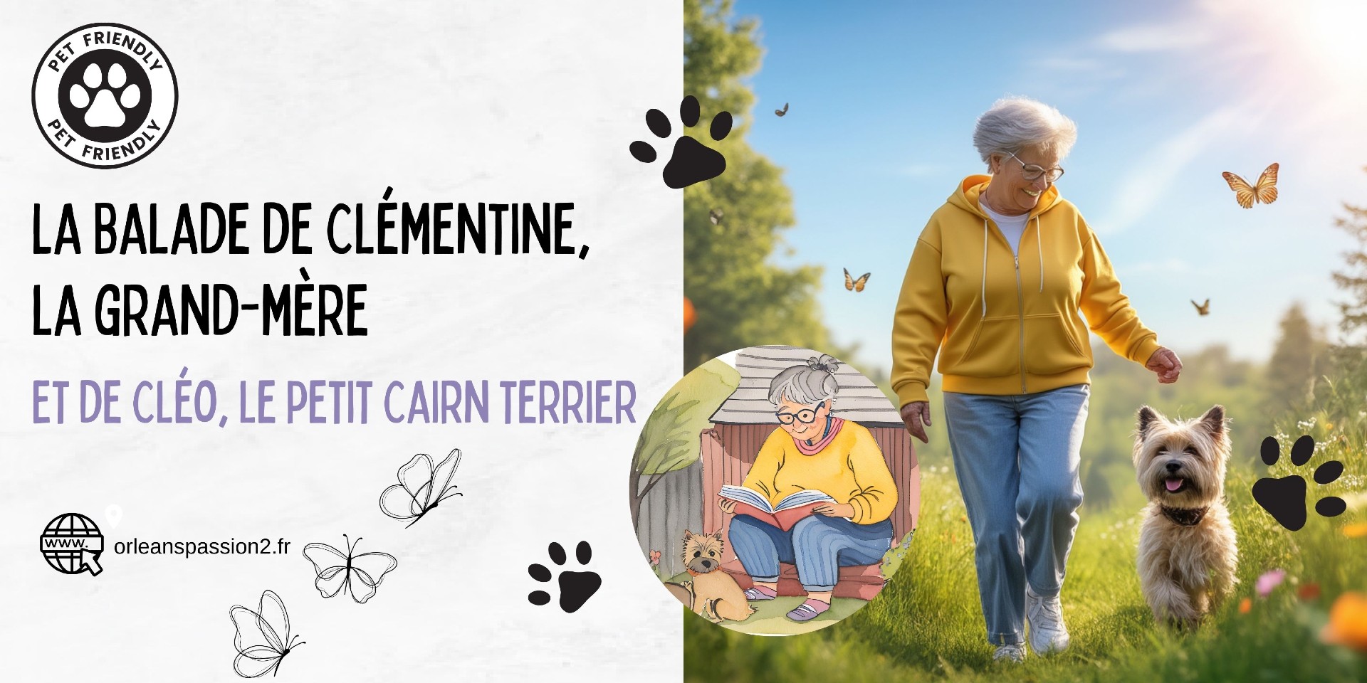 La Balade de Clémentine, la grand-mère et de Cléo, le petit Cairn terrier. (une vidéo + des illustrations)